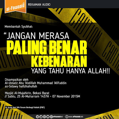 "Jangan merasa paling benar... kebenaran yang tahu hanya Allah" , begitulah kata-kata yang diucapkan atau dituliskan oleh sebagian orang tatkala dakwah disampaikan kepada mereka. Apakah mereka tak sadar bahwa apa yang disampaikan adalah wahyu dari Allah melalui Quran dan Sunnah Rasul shalallahu 'ala…